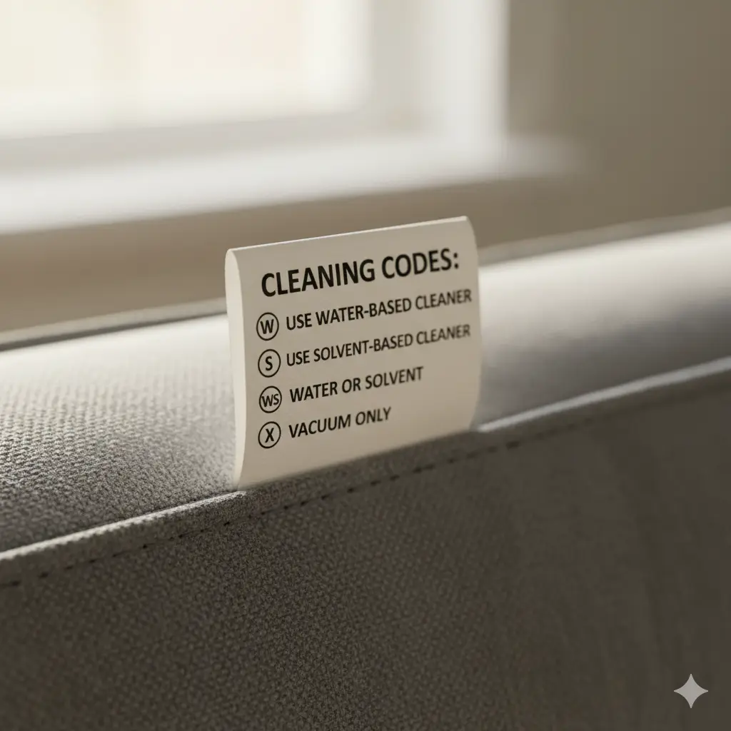 Bước 1: Phân loại vải sofa qua thẻ ký hiệu (Tag)