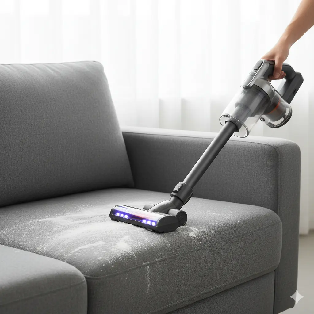 Đây là “vũ khí bí mật”. Rắc một lớp mỏng Baking Soda lên toàn bộ bề mặt ghế. Đợi 20-30 phút để bột hút sạch mùi mồ hôi và độ ẩm dư thừa, sau đó hút bụi lại một lần nữa.